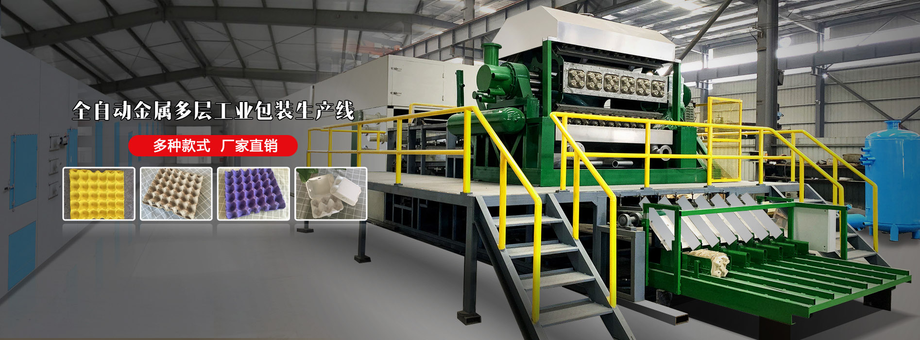 主要產品有:各種大中小型蛋托機,流水線,整套設備;紙漿??s機,包裝機,定型機;各種模具蛋托成品,烘干鐵托盤,晾曬珠托盤以及各種蛋托機配件。產品規格齊全,質量精良,銷往全國各地并遠銷美國、俄羅斯以及東南亞一些國家和地區,深受國內外用戶的信賴。